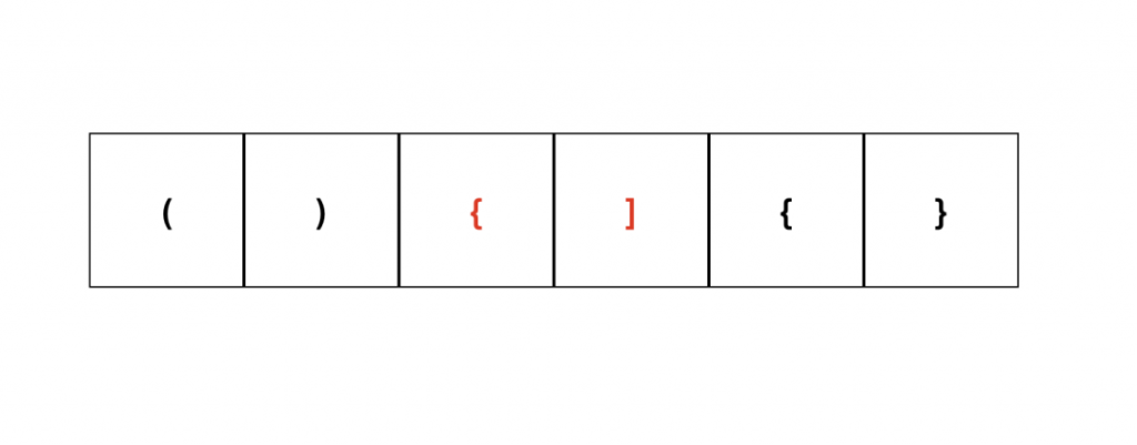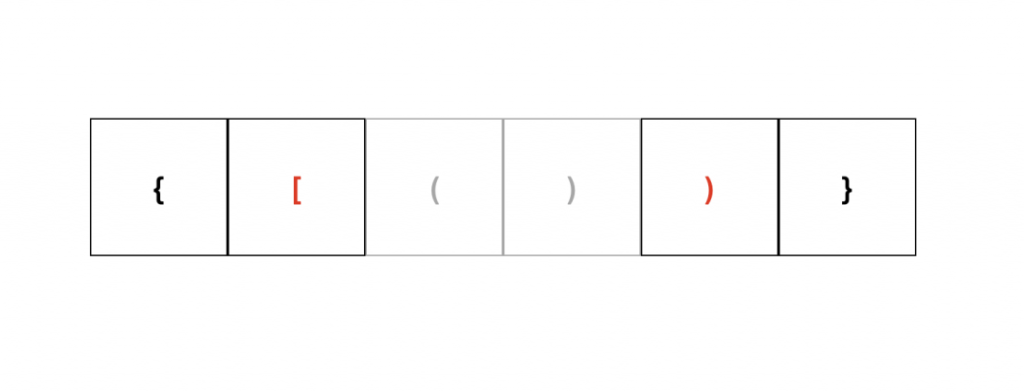 配对 过程,( 与 )、[ 与 ]、{ 与 }。