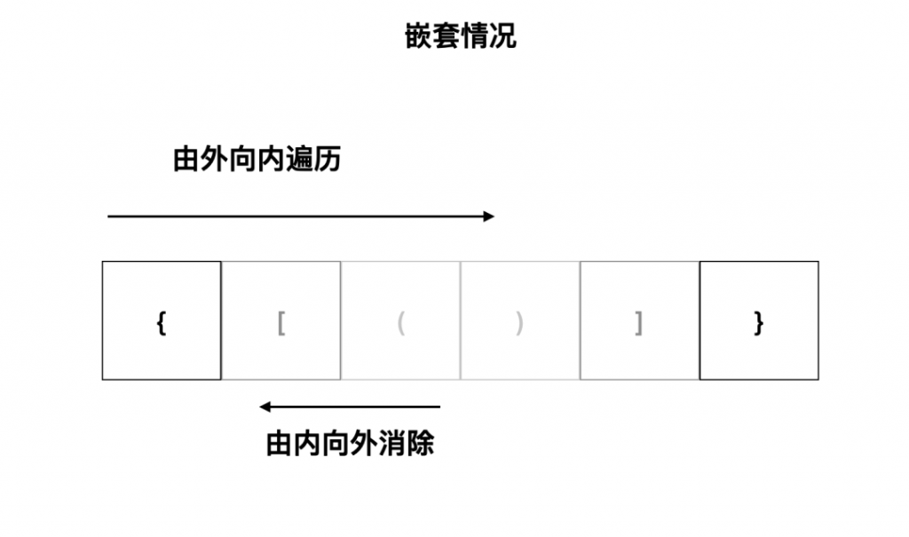 消除 的过程是由内向外进行,先判断能否消除部分子表达式(内),再判断能否消除整体表达式(外),但在遍历的过程却是由外向内进行遍历,需要保存状态,栈 先进后出的特点符合要求。